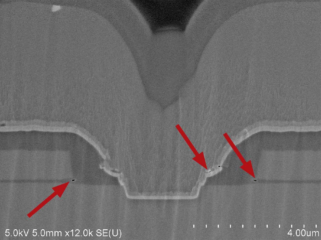 Cross sectioning of a semiconductor die is a basic step in failure analysis (FA) work. A cross section can be used as a check of layer integrity in general or at specific locations. Verifying the dimensions of layers and interlayer connections (vias) is also common. The decision on where to section is determined in an FA by defect localization techniques like emission spectroscopy, OBIRCH, IR, TIVA, XIVA, etc., by electrical evidence or by suspected weaknesses in the design.1,2