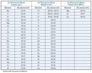 SIMS Detection Limits of Selected Elements in Si and SiO2 Under Normal Depth Profiling Conditions SIMS is a powerful analytical technique which allows detection of all