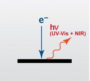Cathodoluminescence (CL) is electromagnetic radiation, or light, ranging from visible (VIS) to near-infrared (NIR) created by the interaction of high-energy electrons (cathode rays) with a luminescent material. The light that is emitted carries very specific information about the optical and electronic properties of the sample.